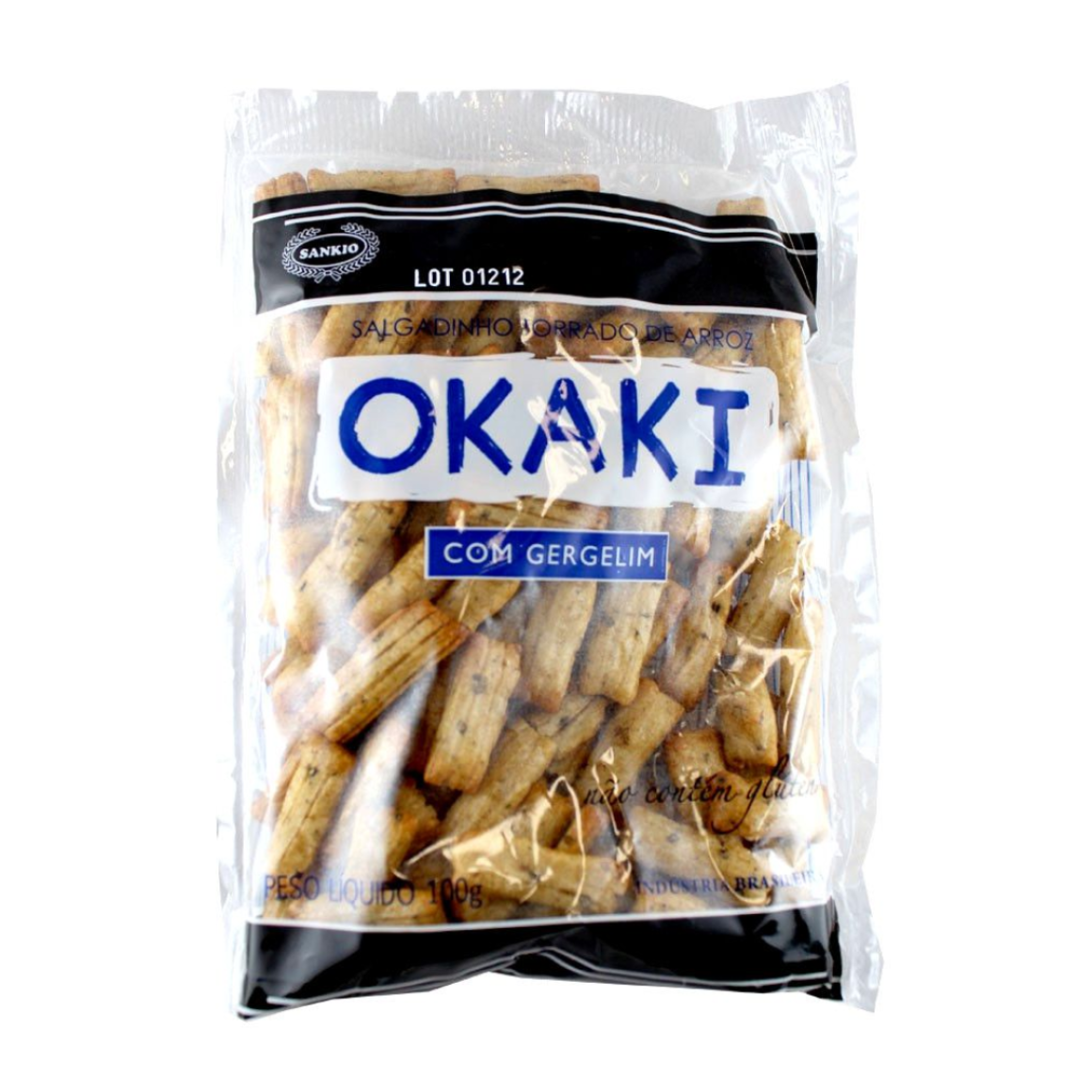 EMBALAGEM: CONTÉM UM PACOTE DE OKAKI COM GERGELIM 100 GRAMAS.