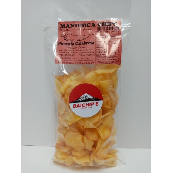 EXPERIMENTE DELICIOSO CHIPS DE MANDIOCA COM PIMENTA CALABRESA CASEIRA, 100% NATURAL.