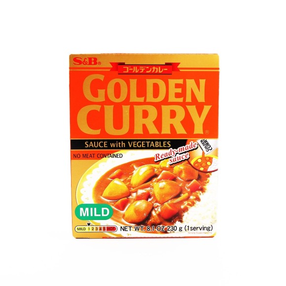 “GOLDEN CURRY” É FEITO DE CURRY ORIGINAL EM PÓ S&B E O CURRY JAPONÊS APRESENTA UM AROMA RICO DE ESPECIARIAS E ERVAS. ESTE É UM MOLHO DE CURRY PRONTO COM VEGETAIS EM UMA BOLSA RETORTA. BASTA COLOCAR EM ÁGUA QUENTE PARA AQUECER O CURRY PRÉ-COZIDO E, EM SEGUIDA, PODE SER SERVIDO COMO CURRY CASEIRO. UMA VEZ QUE CONTÉM VEGETAIS COMO BATATAS E CENOURAS, PODE SIMPLESMENTE APRECIÁ-LO AQUECENDO-O E SERVINDO-O COM ARROZ OU MACARRÃO, OU COMO MOLHO! O TEMPERO SE DESTACA NO SABOR RICO. É PERFEITO PARA QUEM GOSTA DE COMIDA PICANTE. O MOLHO GOLDEN CURRY COM RETORTA DE VEGETAIS NÃO CONTÉM CARNE OU INGREDIENTES DERIVADOS DE CARNE.